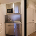 3,50 linéaires de vitrine, mur en pierre naturelle, parquet en chêne massif, possibilité de mobilier Kartell avec grandes et petites tables, chaises Starck, TV écran plat pour démonstrations, machine Nespresso, bouilloire, fontaine à eau Nikken, cuisine équipée, salle de bains et wc.